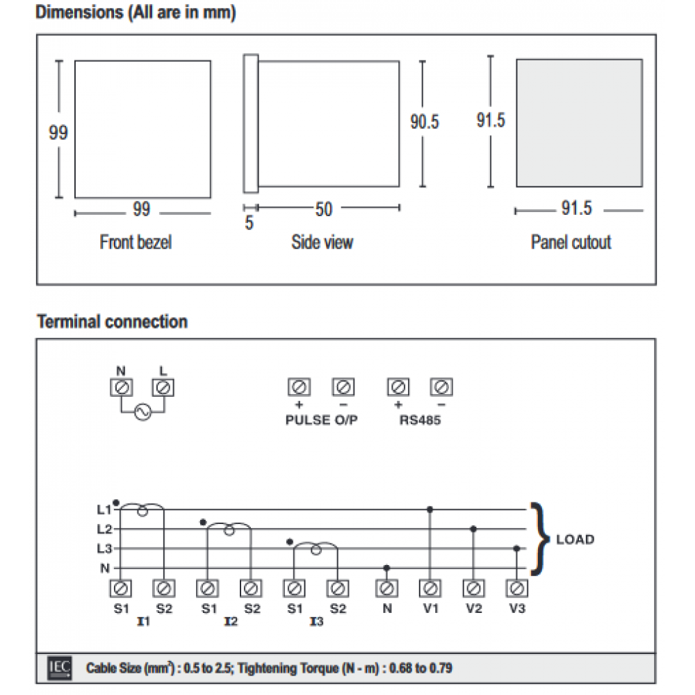 Dimensions 96 x 96 mm